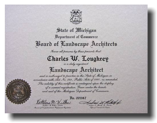 State of Michigan - Registered Landscape Architect Since 1992 |